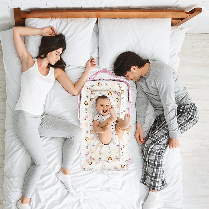 - ZIPPER DESIGN:Baby lounger nest zipper design,remove the jacket for easy cleaning.Keep it clean at all times and grow up healthy and happy along with your baby!