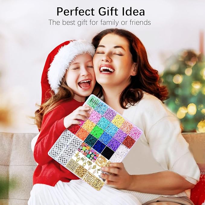 - 【Premium Quality】The diameter of clay beads is 6mm with a 2mm hole and the thickness is 1mm. the premium polymer clay beads refill are handmade with soft clay, The edge of clay beads are smooth.The beads are high stretchy, soft and durable, and not break easily. All materials provided are completely safe and Gifts for Teen Girls