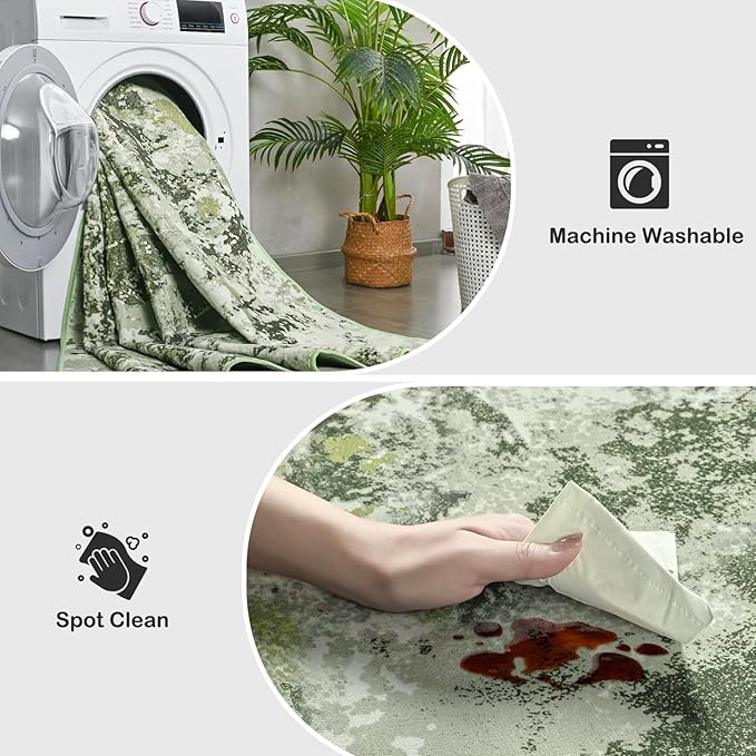 Kelarea 6x9 Rug for Living Room, Green Washable Non-Slip Rugs, Modern Abstract Large Rugs Low Pile Soft Carpet for Bedroom, Kitchen, Dining Room, Classroom, Dorm, Nursery, Home Office