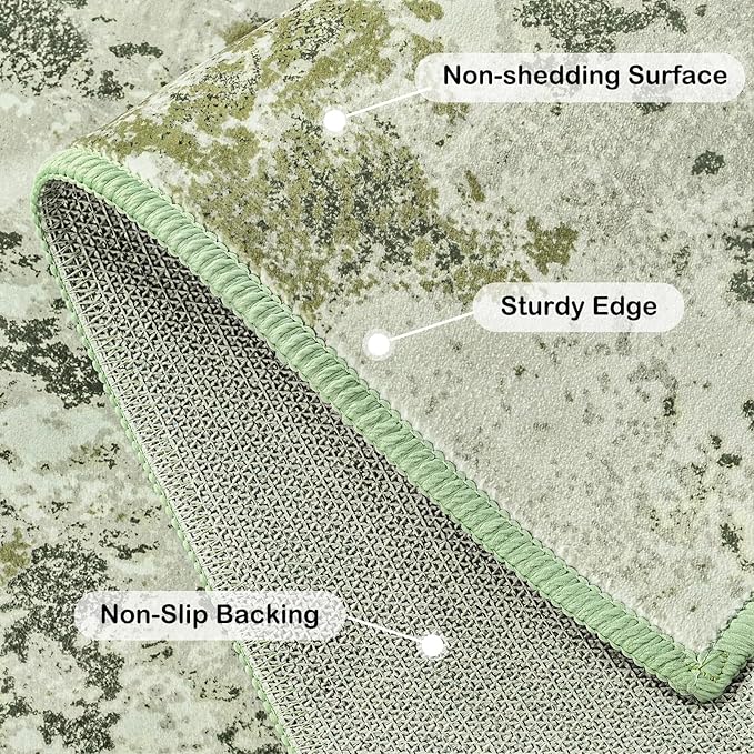Kelarea 5x7 Rug for Living Room, Green Washable Non-Slip Rugs, Modern Abstract Large Rugs Low Pile Soft Carpet for Bedroom, Kitchen, Dining Room, Classroom, Dorm, Nursery, Home Office