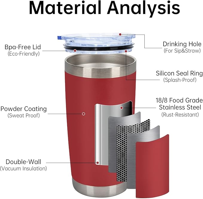 - 【Temperature Retention】: The 20oz Bulk Tumbler uses dual wall vacuum insulation structure to keep drinks cold for 12 hours or hot for 8 hours, The sweat free design of its outer wall always keeps it dry on your desk top, holding your longlasting cold bevarage like iced water, juice, smootie, fizzy drink and more.