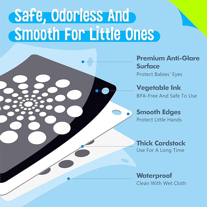 - Ideal Gift: The brain development is vital for babies’ growth, these black and white high contrast baby visual stimulus cards play an important role in cognitive development. It is perfect as birthday, holidays gift for newborn and infants.