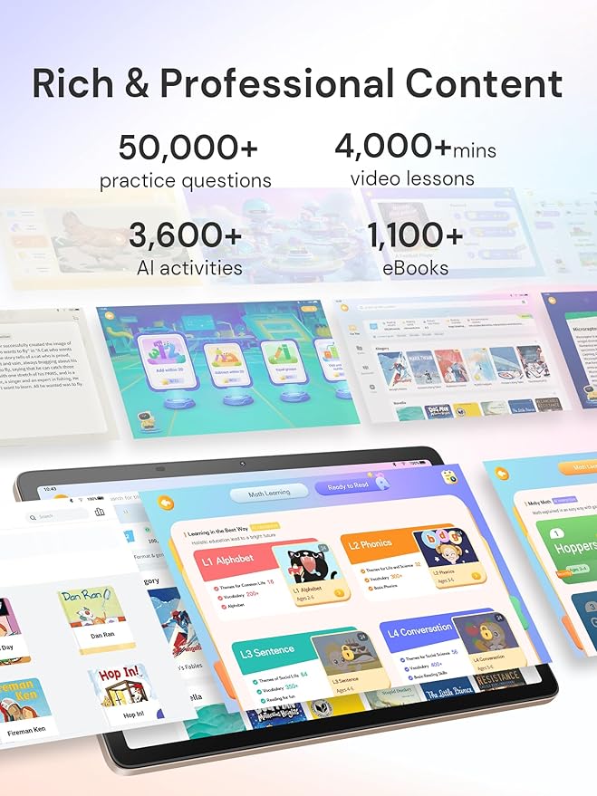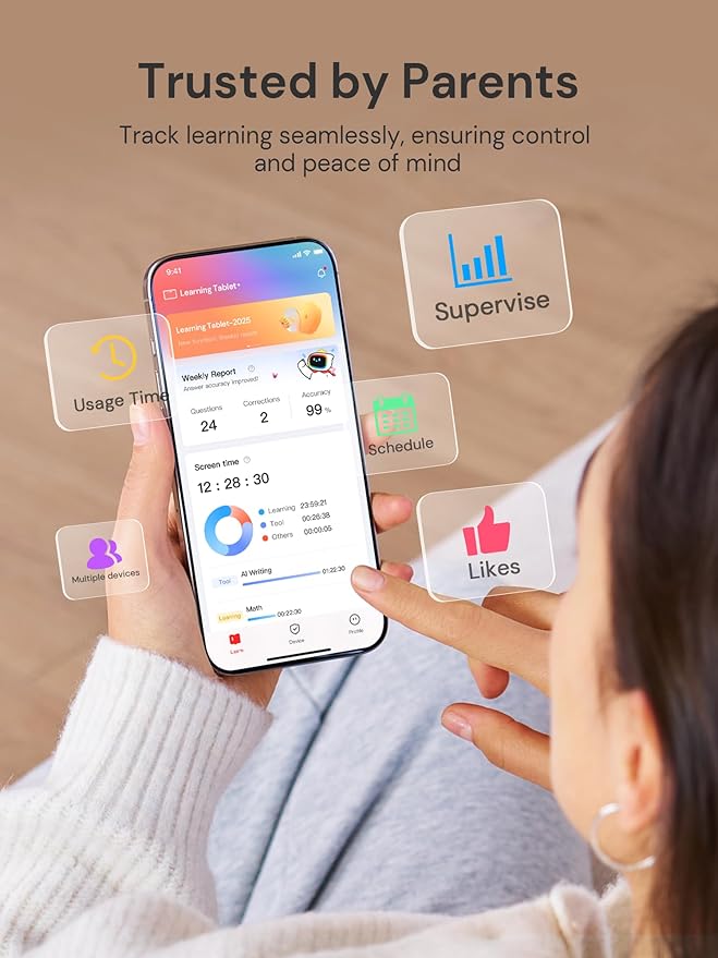 - [ Trusted Parental Peace of Mind ] - Stay in control with screen time management, app filtering, and daily progress reports. Our secure ecosystem ensures a focused, age-appropriate digital environment for safe learning and growth.