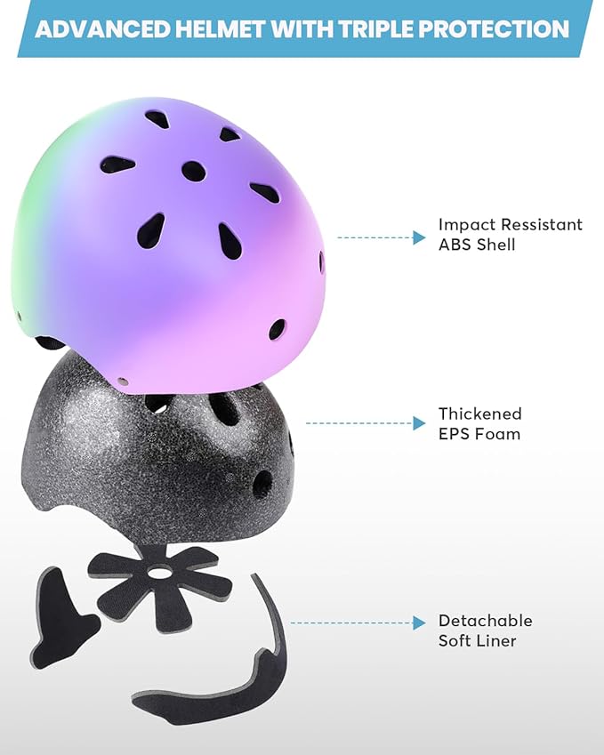 - Ventilated & Sweat-Absorbing Comfort - Equipped with 11 air vents and breathable, removable interior padding that helps absorb sweat and improve comfort. Keeps kids cool and dry during biking, skateboarding, scootering, rollerblading, and more.