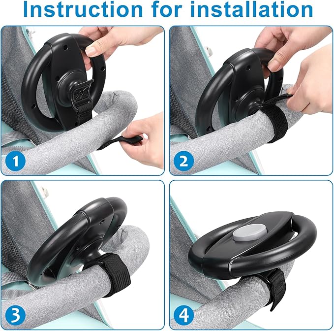 - Easy to Install: This steering wheel designed with a Velcro, remain stable and easily attached to stroller handlebar or any device with handles. Complete installation in a few seconds.