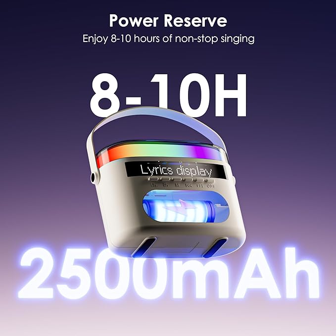 - Wireless Connectivity & Universal Compatibility: Pair devices instantly via cutting-edge Bluetooth 5.3 (50ft range) while dual mics auto-sync for zero-lag duets. Flexible connectivity options include USB/TF card slots, AUX input, and compatibility with Android, iOS, TVs, tablets, and car stereos - making this your ultimate portable karaoke hub.