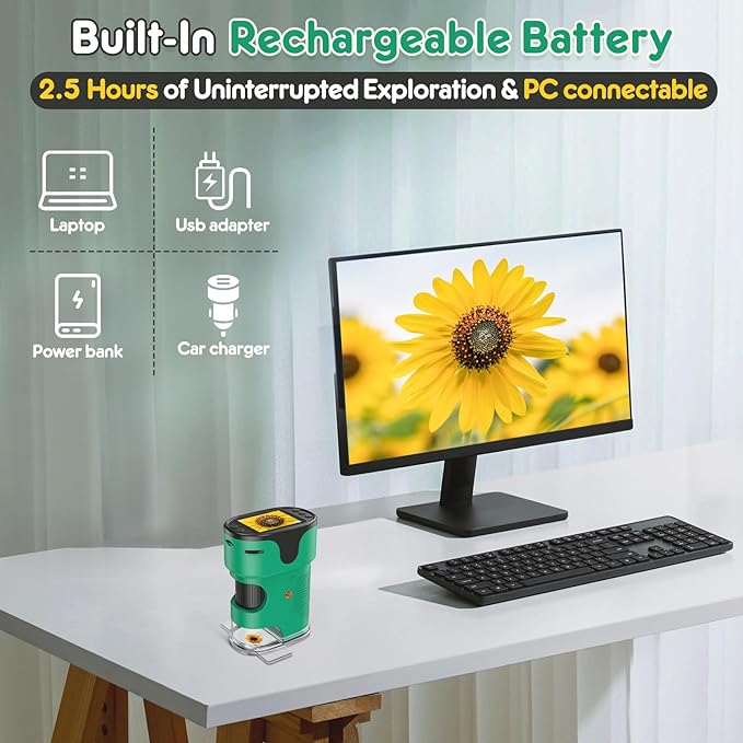 - Rechargeable: our digital microscope built-in with large capacity rechargeable battery. can be used continuously for 2.5 hours after fully charged, the charging cable included.