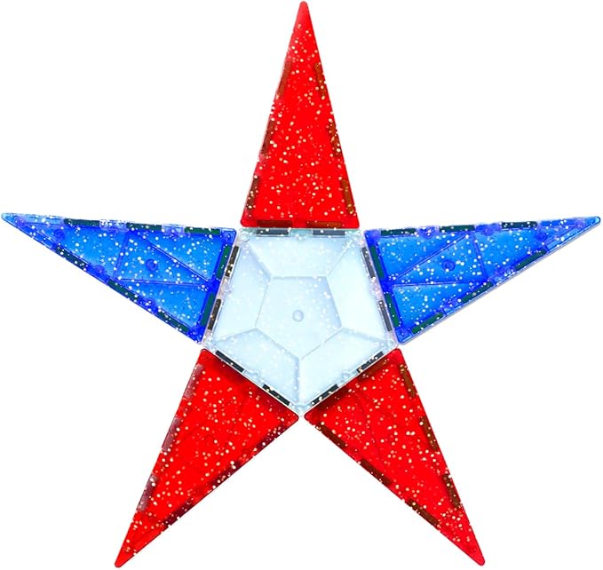 CreateOn Crayola Red, White & Blue Magnetic Tiles 14pc, Building Set for Kids, Magnetic Toy, Travel Toys, Classroom Sensory Toy Blocks, STEM & Montessori Tools for Boys & Girls Ages 3+, 14-Piece Set