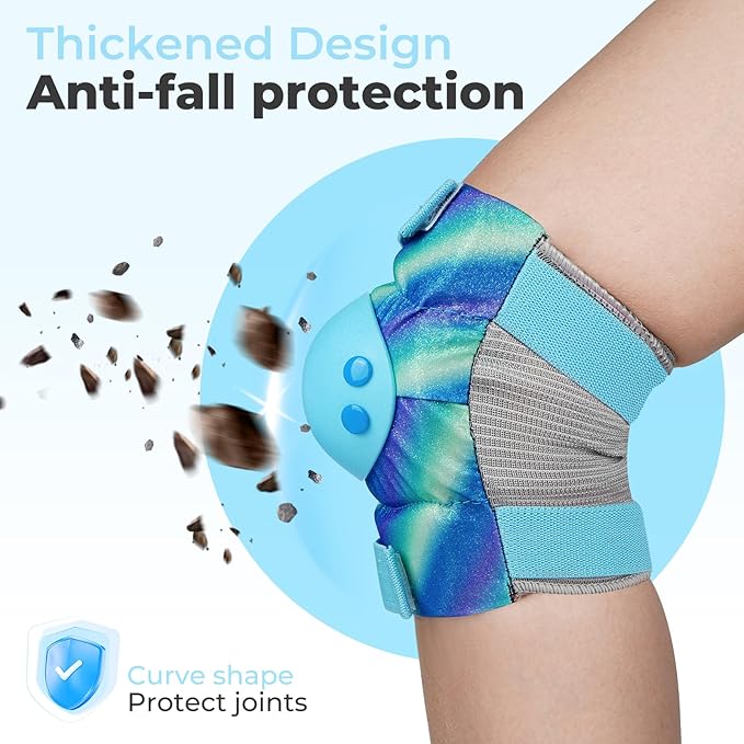 - Ventilated Fabrics - BOSONER kids knee pads and elbow pads set are made of high grade durable fabrics, with EVA foam padding and polycarbonate full-coverage caps, which has good shock absorption and cushioning effect to reduce the damage caused by sports fall