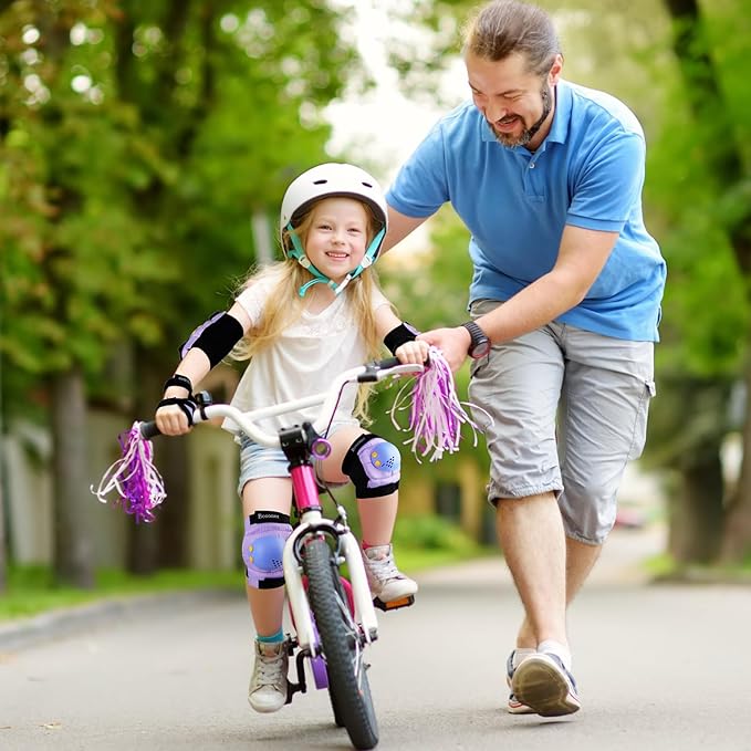 • Ventilated Fabrics - BOSONER kids knee pads and elbow pads set are made of high grade durable fabrics, with EVA foam padding and polycarbonate full-coverage caps, which has good shock absorption and cushioning effect to reduce the damage caused by sports fall