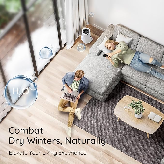 - No Visible Mist Humidifier: Unlike traditional cool mist humidifiers for bedroom that produce visible mist, our H5 model air humidifiers releases only water vapor. This direct vapor output is advantageous for maintaining more consistent humidity levels, protecting valuable furniture, artwork, and electronics from water damage. Plant humidifier indoor is ideal for homeowners who prioritize preserving the quality of their interior decor.