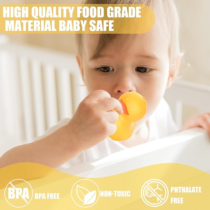 - SAFE MATERIAL: These duck bath toys for babies 6-12 months are made of high quality silicone, BPA free, phthalate free. They are not only durable, but also safe, smooth rounded corners design, protective for baby's delicate hands, which make baby bathing more fun, the ideal silicone bath toys for baby