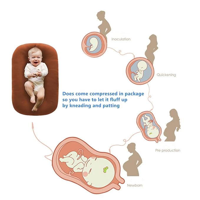 - 100% Cotton Safe Material: The infant lounger features a super soft and breathable pure cotton cover with 3D polyester filling, free from harmful substances to ensure safety for your baby. This baby gym mat’s ergonomic design creates a comfortable and secure space for daily use, keeping your baby close while you attend to daily tasks. 【CAUTION】: Not intended to be used as a sleeping device. Always ensure adult supervision during use