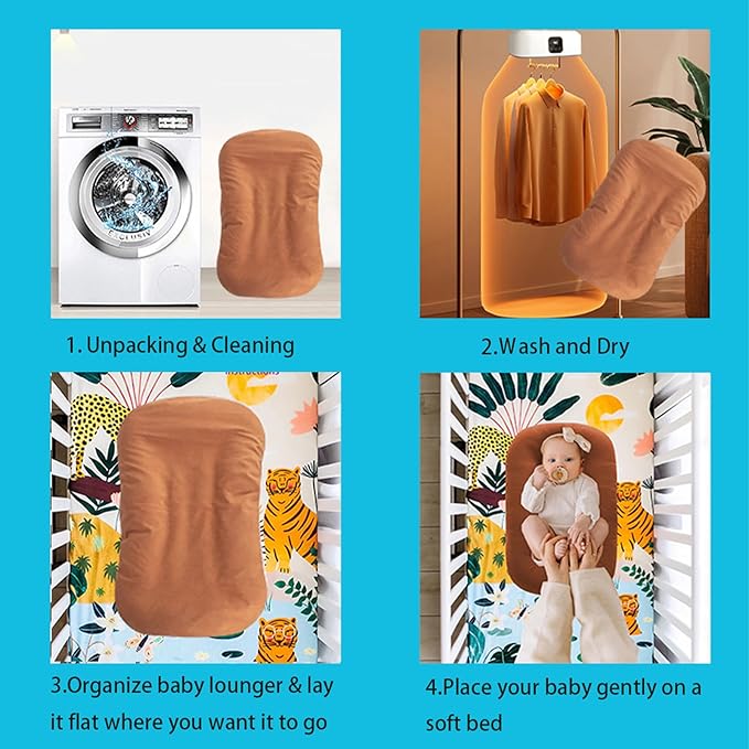 - Easily Washable Cover: LOEVIN'S baby lounger is designed for newborns up to 12-month-olds, offering a safe and cozy space for your little one’s early-stage use and comes with a detachable cover that's easy to remove and machine wash--keeping it fresh and hygienic with minimal effort