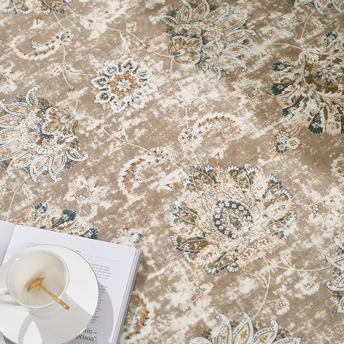 jinchan Round Rug 5ft Area Rug - Indoor Vintage Hallway Circle 5' Washable - Ultra-Thin Low Pile Soft Small Non Slip Distressed Floral Print for Living Room Dining Room Bedroom Entryway Taupe
