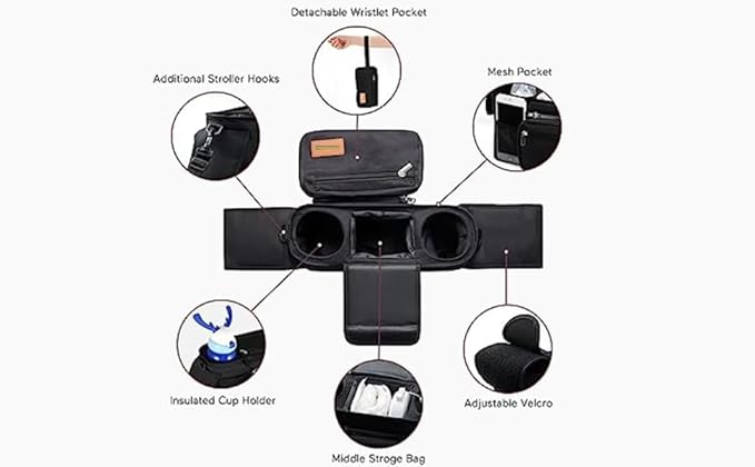 - ✅ UNIVERSAL STROLLER FIT – Attaches to most stroller brands with strong adjustable Velcro straps. Perfect for travel, daily walks, and errands — a must-have parent console for easy access to essentials.