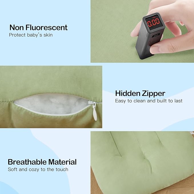 - Material: We chose to use organic cotton to keep our products from containing harmful chemicals. For our fills, we use polyester fiber with zero added chemicals or flame retardants. This baby lounger is CPC, AAP, and CPSC certified, ensuring that it meets rigorous safety standards. With its thoughtful design, providing a reliable space for your little one to explore and interact with family