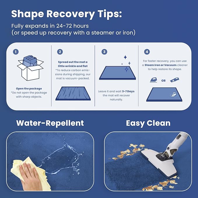 - 【HOW TO CARE FOR YOUR MAT】: Our 79×71inch foldable kids' carpet is designed for easy storage. You can roll or fold the mat and tuck it away in a wardrobe or corner. When you first open it, you may notice creases, bumps, and compression; don’t fret, this is normal! We recommend steaming or ironing it to help restore its smooth surface