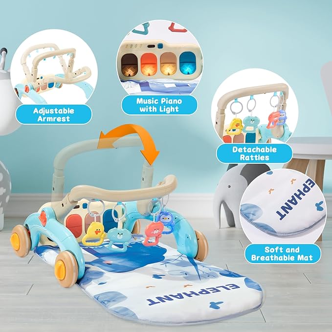 - Perfect Newborn Gift. Our baby gym playmat and walker are designed with babies in mind, focused on early learning and growth. From the sensory stage to the exploration stage, this baby girl play mat with piano provides a rich learning experience for babies, allowing them to grow and learn effortlessly through play. Packaged beautifully, it makes for a great gift for newborns infants and toddlers.