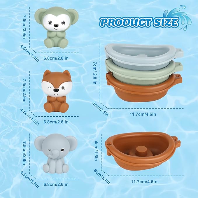 - 【𝐁𝐚𝐭𝐡 𝐏𝐨𝐨𝐥 𝐓𝐨𝐲𝐬 𝐰𝐢𝐭𝐡 𝐌𝐮𝐥𝐭𝐢𝐩𝐥𝐞 𝐏𝐥𝐚𝐲】Our bath toy set includes 3 finger boats and 3 finger puppets. The 3 boats can be used as stacking toys, while the 3 finger puppets are great for animal role - playing and storytelling. With this bath pool toys, bath pool time will be a fun and enjoyable experience for your little one! It's the perfect bath toy for toddlers aged 1-3, ensuring they have a blast in the bathtub or in the pool