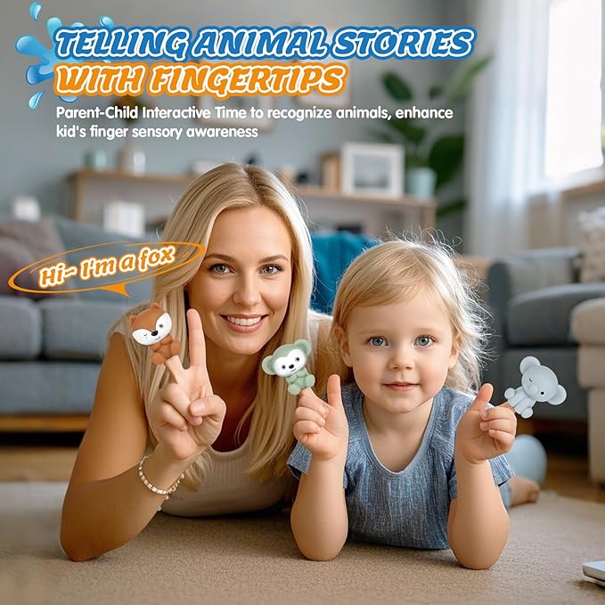 - 【𝐒𝐞𝐧𝐬𝐨𝐫𝐲 𝐃𝐞𝐯𝐞𝐥𝐨𝐩𝐦𝐞𝐧𝐭】This toddler toys for 1-3 year old boy/girl, helps enhance their finger sensitivity while providing chances to explore different textures. We can also use this set of finger puppets to tell animal stories to our little ones. This not only strengthens the parent - child relationship but also helps your toddler recognize animals, colors, enhancing their finger sensory awareness.Ideal sensory toys for toddlers 2-3 that nurture growth