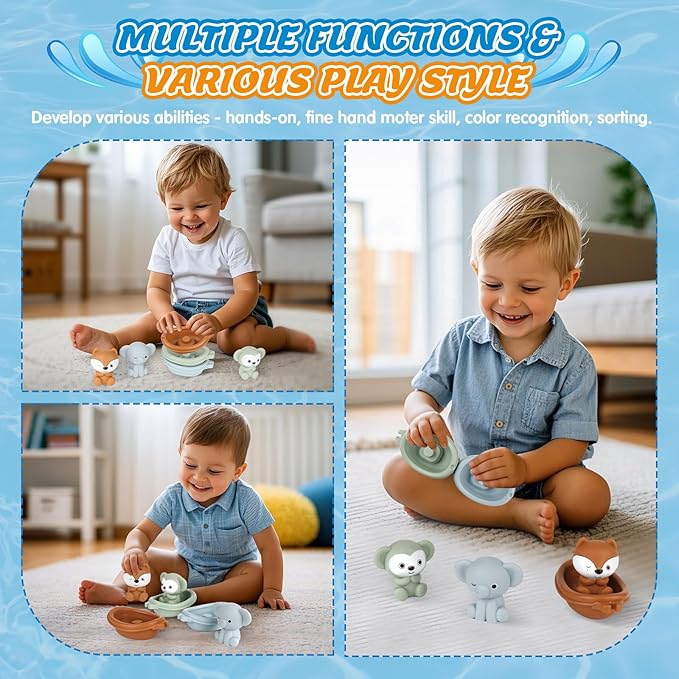 - 【𝐁𝐞𝐬𝐭 𝐆𝐢𝐟𝐭 𝐓𝐨𝐲𝐬 𝐟𝐨𝐫 1-𝟥 𝐘𝐞𝐚𝐫 𝐎𝐥𝐝 𝐁𝐨𝐲/𝐆𝐢𝐫𝐥】It can be used as a birthday gift, or a Christmas gift. This toys gifts for 1 year old boy/girl is not only a fun bath toy toddler toys suitable for use in water areas such as bathtubs, swimming pools, and beaches but can also be used as a stacking toy/finger puppet set, create interactive animal stories to teach colors, names with your little one at house floor
