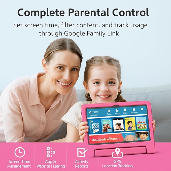- 【NOBKLEN Kids Tablet: AI-Guided Safety & Certified Learning Ecosystem】Designed for the digital-native generation, this tablet integrates Google Kids Space and Family Link 3.0 with cutting-edge AI moderation. Its Real-Time Content Shield proactively blocks inappropriate keywords, images, and phishing links using machine learning – no manual updates needed.