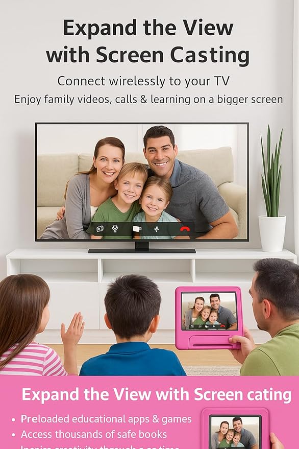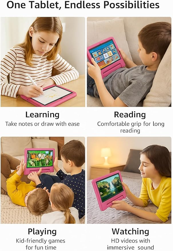 - 【Next-Gen Android 14 Kids Tablet with Enhanced Learning Features】 Engineered for young explorers, this tablet combines 8GB RAM + Octa-Core processing power for lag-free educational gaming and video streaming. The 10.1" IPS HD eye-care display (1280x800) reduces glare during outdoor use while maintaining vibrant colors. Ultra-stable WiFi 6 connectivity ensures uninterrupted Zoom classes, paired with Bluetooth 5.2 for wireless headphones.