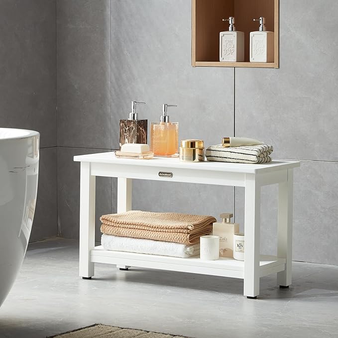 - 【Plus size & Adjustable Feet】Larger size: 30*13 inches, which can bear more load (Weight capacity is about 700LBS), double-layer super large space, Water Resistant & Non-fade:The shower seat has strong water resistance, can be safely washed with water, and is made of 100% polystyrene material, without using any paint, so it will never fade. It adds 4 adjustable rubber feets which can protect your floor to scratch.