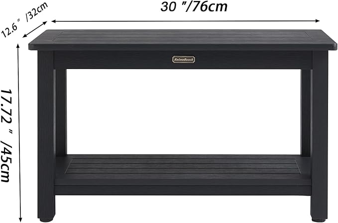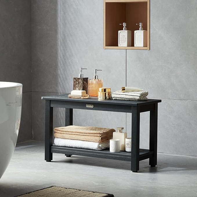 30'' Waterproof Shower Stool, Poly Lumber Shower Bench Seat for Shaving Legs, HDPS Plastic Bath Chair Seat, Non-Slip & No Maintenance, Black, Weight Capacity 700LBS (30 x 13 Inches)