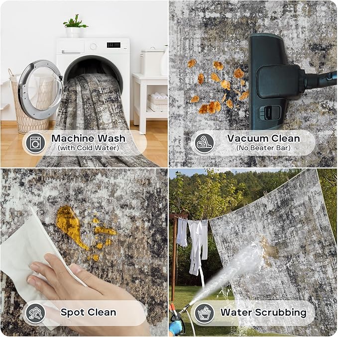 - Easy Maintenance: Keep your space fresh and clean with minimal effort. Our modern 6x9 area rugs are machine washable, spot-cleanable, and vacuum-friendly, making maintenance a breeze. Use a low-power vacuum regularly to remove dust or pet hair for everyday care. Avoid using bleach for best results