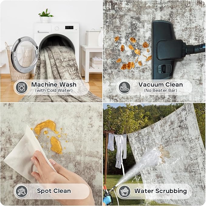 - Easy Maintenance: Keep your space fresh and clean with minimal effort. Our modern 4x6 area rugs are machine washable, spot-cleanable, and vacuum-friendly, making maintenance a breeze. Use a low-power vacuum regularly to remove dust or pet hair for everyday care. Avoid using bleach for best results