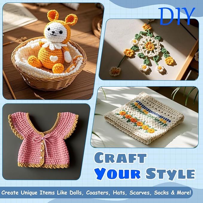 - 🌈【DESIGNED FOR TOTAL BEGINNERS】Learn crochet from scratch with confidence! This kit includes soft yarn, a full hook range, and visual step-by-step guides—perfect for first-time crafters exploring scarves, toys, or blankets.