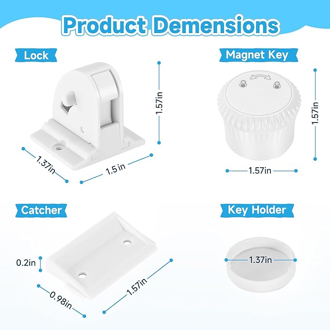 - Easy Installation: No tools or drilling are required for this magnetic door lock installation; simply measure and install using strong 3M adhesive. There's no need to drill holes or screw into your cabinets and drawers, and the adhesive can be removed without leaving any trace. Protect your child's safety without damaging your furniture