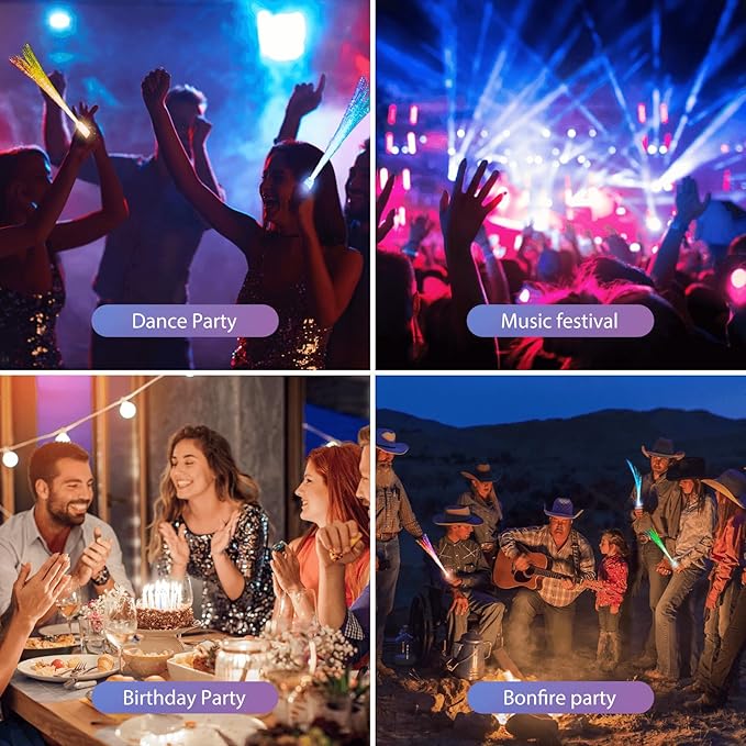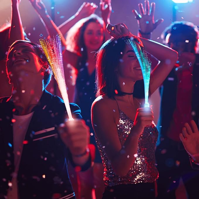 - 28-Piece Glow Wand Set: Vibrant multicolor fiber optic sticks pack perfect for parties, festivals & home decor. Reusable LED light toys for glow performances, dance routines & night events. Durable construction ensures long-lasting glow effects.