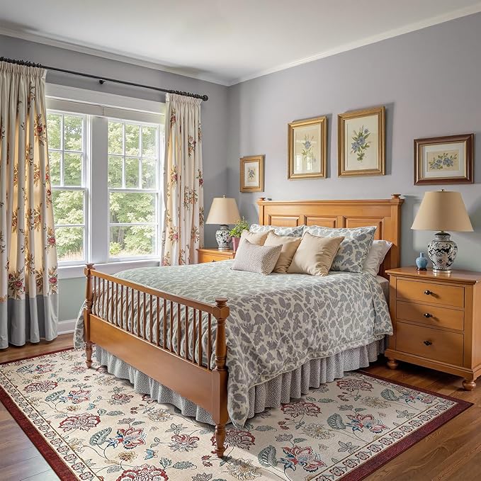 - Floral Vintage Charm: Layers of lush botanical florals framed by an ornate border bring timeless American vintage elegance to your home. The soft cream base and warm floral tones create a welcoming mood—like stepping into a sunlit garden filled with stories.
