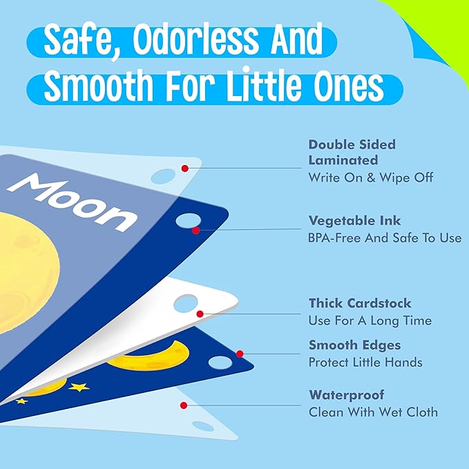 - Well Made: The card adopts sturdy and thickened cardstock with PET film on both sides, durable and tear-resistant. Printed with premium non-toxic vegetable oil-based ink, BPA-free and safe for kids to use. Bright colors and cute designs catch kids’ eyes and evoke a sense of excitement and joy.