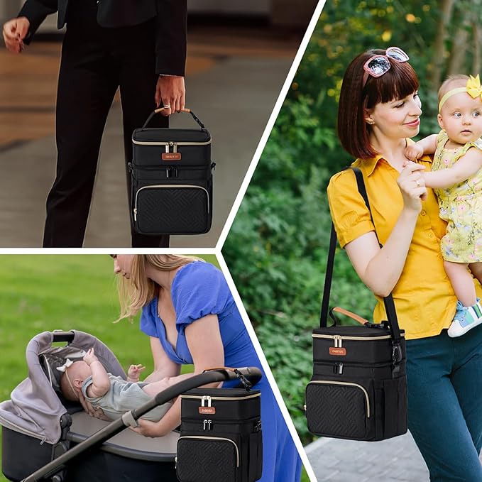 - Smart Double-Layer Organization & Versatile Use:Size of the breastmilk cooler bag is 9.2"D x 8.5"W x 11.2"H,maximize storage with dual compartments holding 6 bottles (9 oz each) and wearable pump or snacks. Perfect as a breastmilk cooler bag, daycare lunch box, or portable snack organizer. Keep essentials separated and secure for on-the-go convenience.