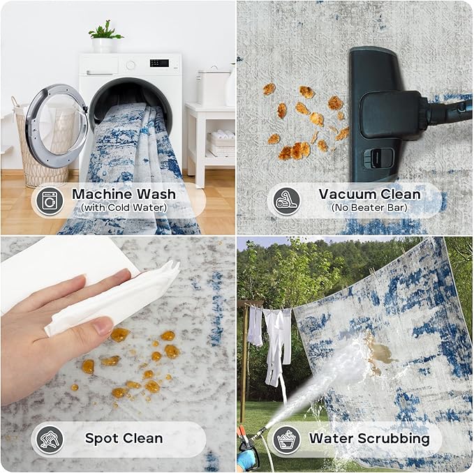 - Easy Maintenance: Keep your space fresh and clean with minimal effort. Our modern 6x9 area rugs are machine washable, spot-cleanable, and vacuum-friendly, making maintenance a breeze. Use a low-power vacuum regularly to remove dust or pet hair for everyday care. Avoid using bleach for best results