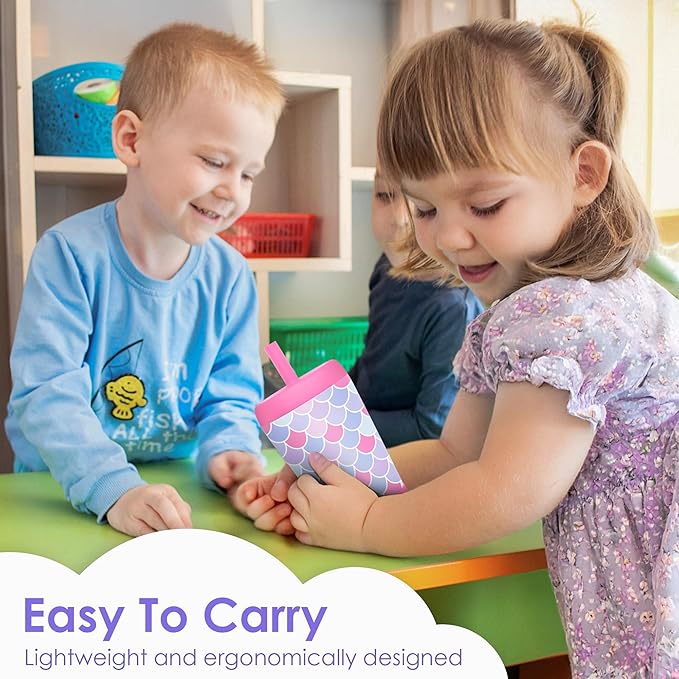 Kid Insulated Stainless Steel Tumbler with Silicone Straw, 12oz Sippy Cup for Kids (Mermaid Scale)