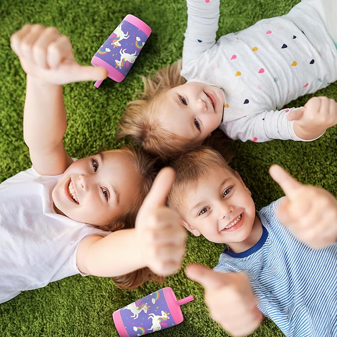 Kid Insulated Stainless Steel Tumbler with Silicone Straw, 12oz Sippy Cup for Kids (Unicorn)