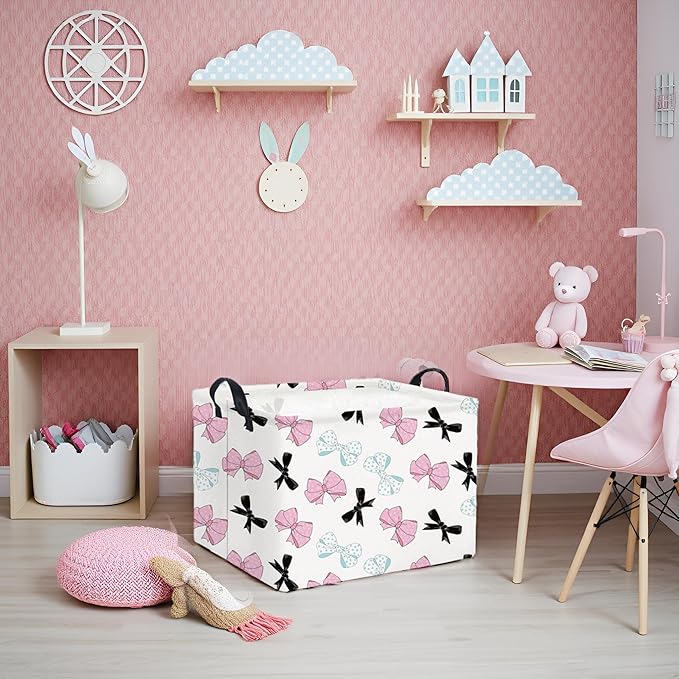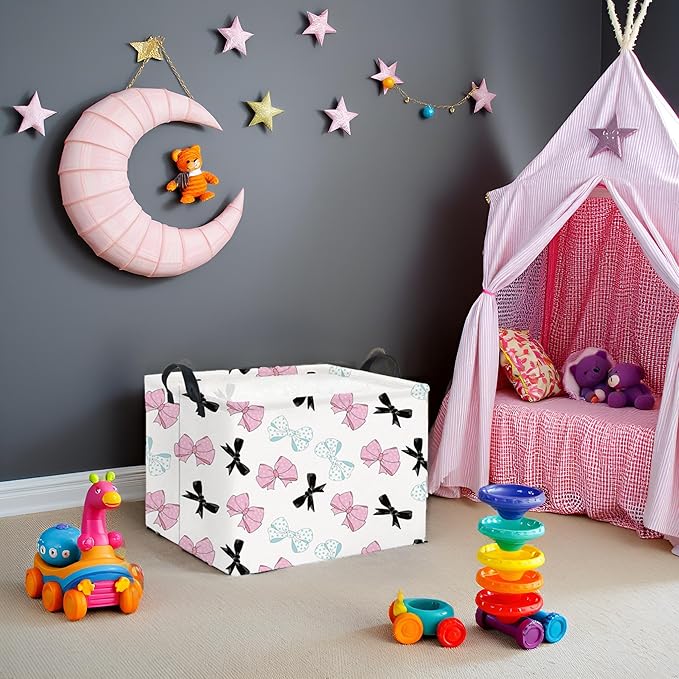HIYAGON Rectangular Bowknot Basket Kids Baby Storage Basket Toy Storage Bin Organizer Box Room Decor(Bowknot)