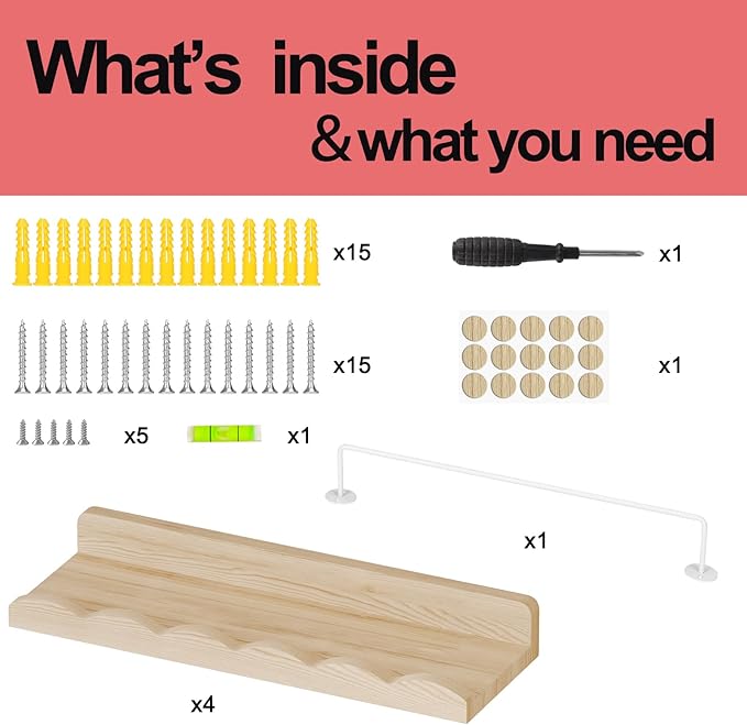 - 【Sturdy & Easy to Assemble】 - Easy to install in minutes with the installation manual. In addition, our wall shelves can hold up 20 lbs of weight when you install them firmly on the wall.