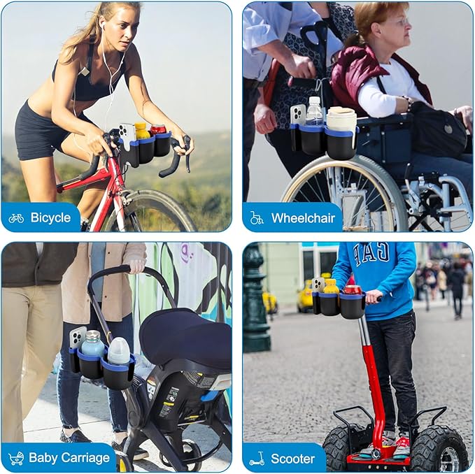 - Wide Compatibility: This universal cup holder with phone holder compatible with most baby strollers, walker, wheelchair, rollator, bike, scooter, boat handle bar, shopping cart, kayak, ATV, lawnmowers, motorcycle, treadmill, golf push cart and so on.