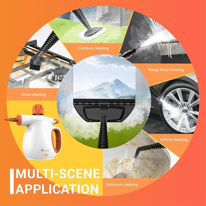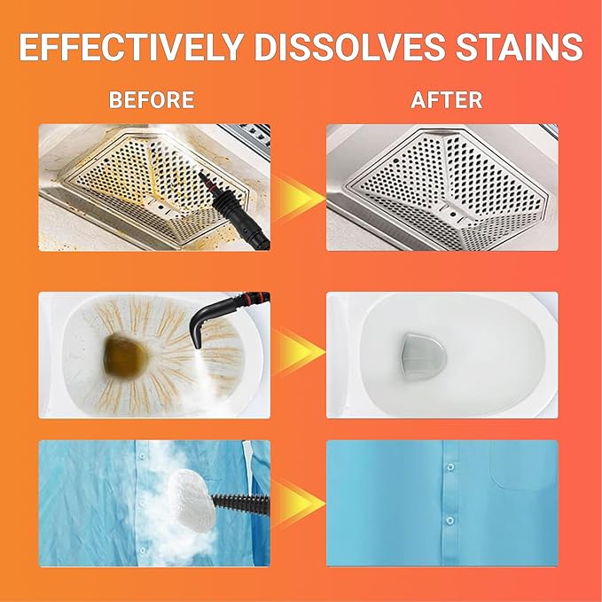 - 【221℉ Deep Cleaning Power】High-temperature steam loosens toughest grease on stovetops, mineral deposits in showers, and sticky residues in cars