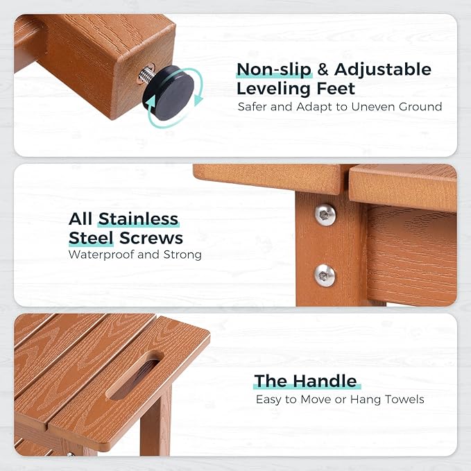 - 【100% Waterproof】 The shower bench is made of HIPS (poly lumber), with 304 stainless screws, which is highly water proof, never rot and moldy. Easy to clean, just wipe it with a towel.
