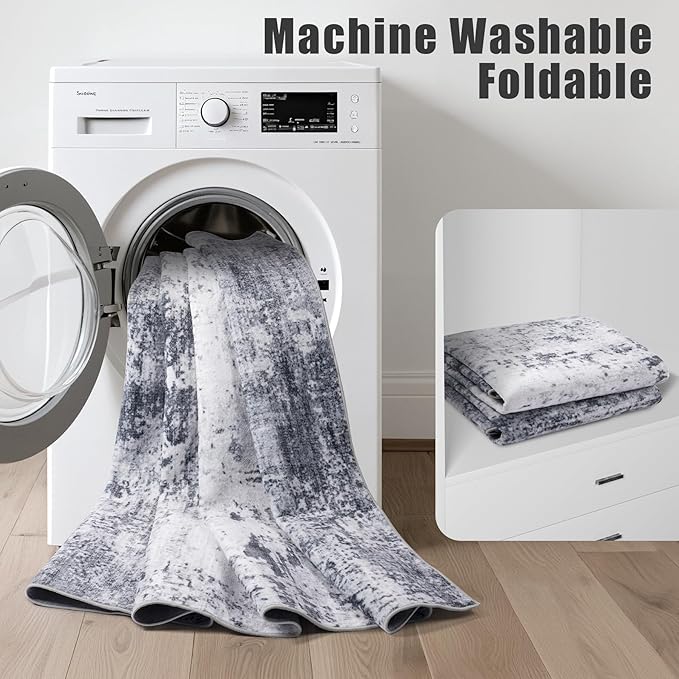 - Machine Washable Rug: Say goodbye to hidden dirt and cleaning hassles. The low soft pile of this 8x10 rug keeps most dirt on the surface, making it easy to clean with a carpet brush.The added bonus of it being machine washable makes it a breeze to maintain and saves you time. 6'x9 'and above are recommended to use nearby commercial laundry rooms