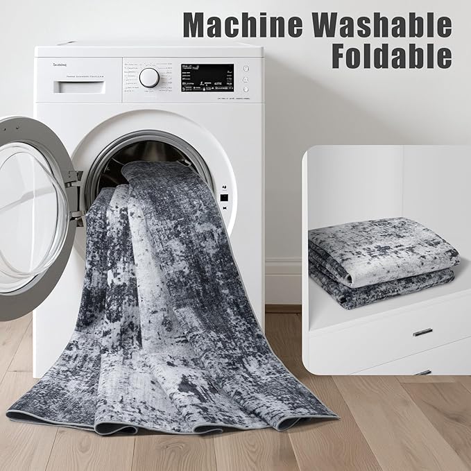 - Machine Washable Rug: Say goodbye to hidden dirt and cleaning hassles. The low soft pile of this 6x9 rug keeps most dirt on the surface, making it easy to clean with a carpet brush.The added bonus of it being machine washable makes it a breeze to maintain and saves you time. 6'x9 'and above are recommended to use nearby commercial laundry rooms