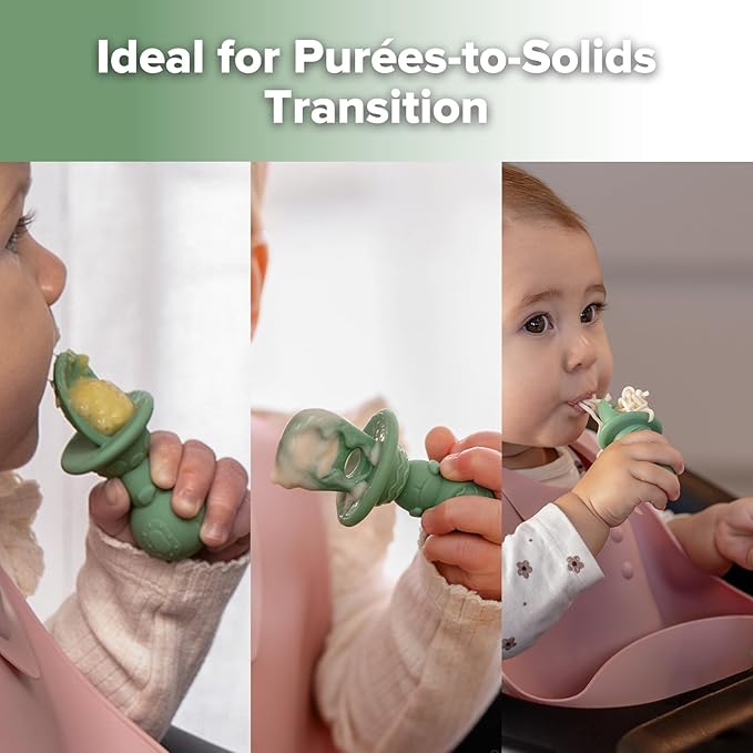 - 𝐓𝐄𝐄𝐓𝐇𝐈𝐍𝐆-𝐅𝐑𝐈𝐄𝐍𝐃𝐋𝐘 & 𝐆𝐄𝐍𝐓𝐋𝐄 𝐎𝐍 𝐆𝐔𝐌𝐒:This soft silicone baby feeding set prevent irritation, making them ideal for teething babies as they transition to solid foods.