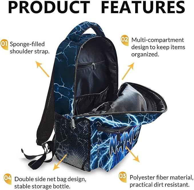 - COOL LIGHTNING BACKPACK DESIGN: In addition to practical use, this schoolbag is also printed with vivid patterns, and we also offer customization options. Click on "Customize Now" to add personalized customized information to your backpack